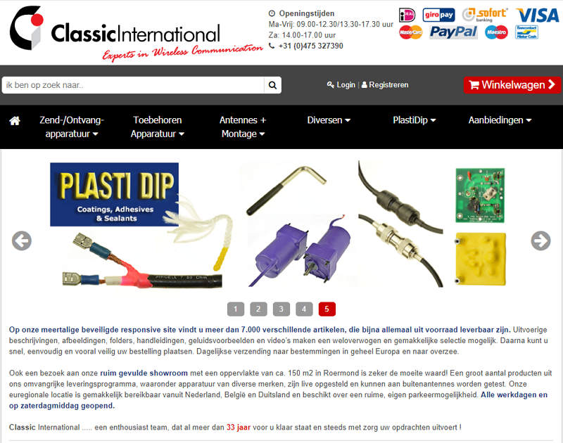 ClassicInternational is reeds gedurende vele jaren EU importeur van o.a.: Ameritron, Bencher, Butternut, Flexa, HeilSound, Hustler, Hygain, LDG, MFJ, Microset, Mirage, PKW, Plasti-Dip, SSB Electronics, Tonna en Vectronics. Binnenkort ook Cushcraft. Producten van genoemde fabrikanten worden door ons rechtsreeks en via een aantal nationale en internationale verkoopkanalen aangeboden.